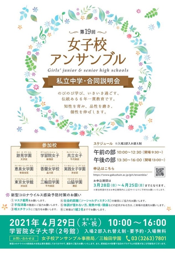 からの記事と詳細 ( 【中学受験】合同説明会「女子校アンサンブル」4/29 - リセマム )