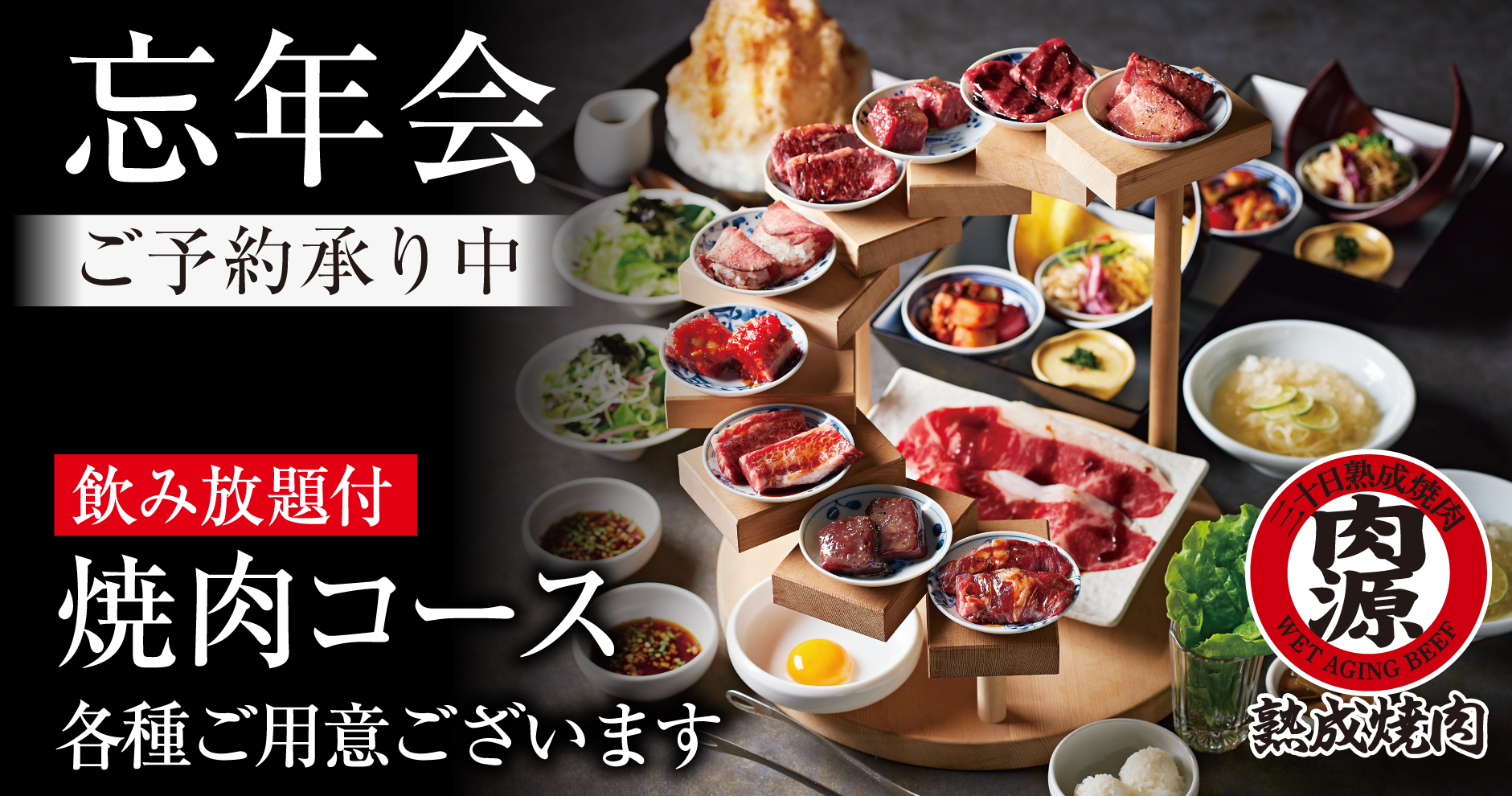 からの記事と詳細 ( 【熟成焼肉 肉源】忘年会は肉源で!熟成肉などを堪能できる飲み放題付きの4コースが新登場! - PR TIMES )